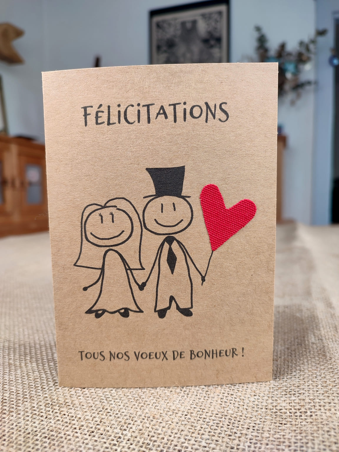 Ces cartes de félicitations de mariage ont été pensées pour accompagner l’un des plus beaux moments d’une vie. Élégantes et délicates, elles offrent un support chaleureux pour transmettre vos vœux de bonheur aux mariés.